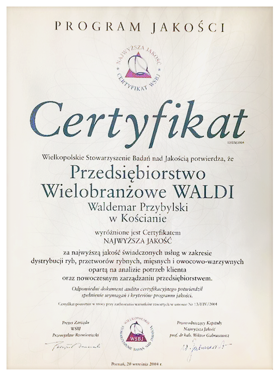 Poziom naszych dostaw został wielokrotnie doceniony przez prestiżowe, niezależne instytucje m.in. przez Wielkopolskie Stowarzyszenie Badań nad Jakością.
