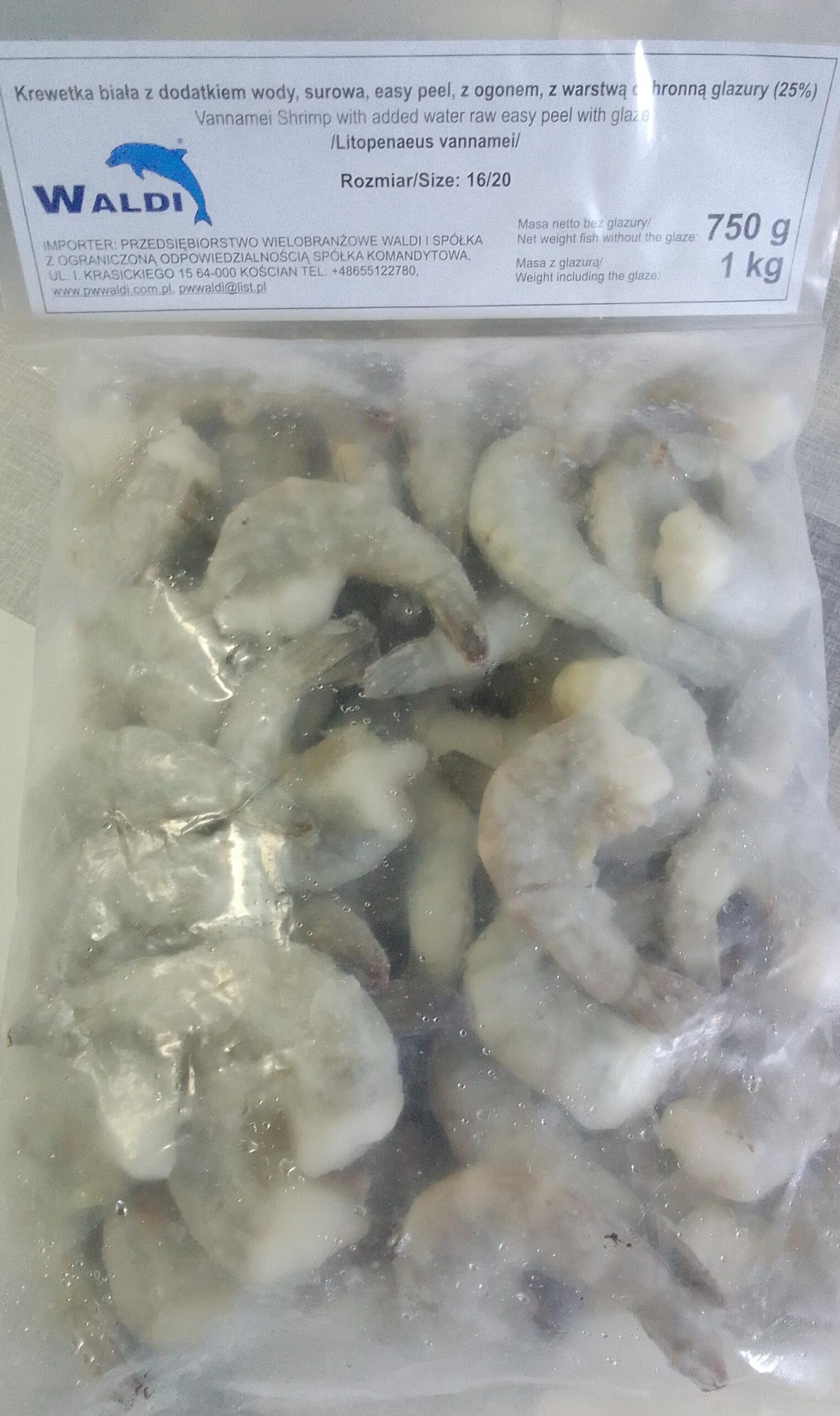 White shrimp (Litopenaeus vannamei) easy pell prawn IQF size 16-20 25% glaze 1kg(10x1kg) Vannamei Vietnam