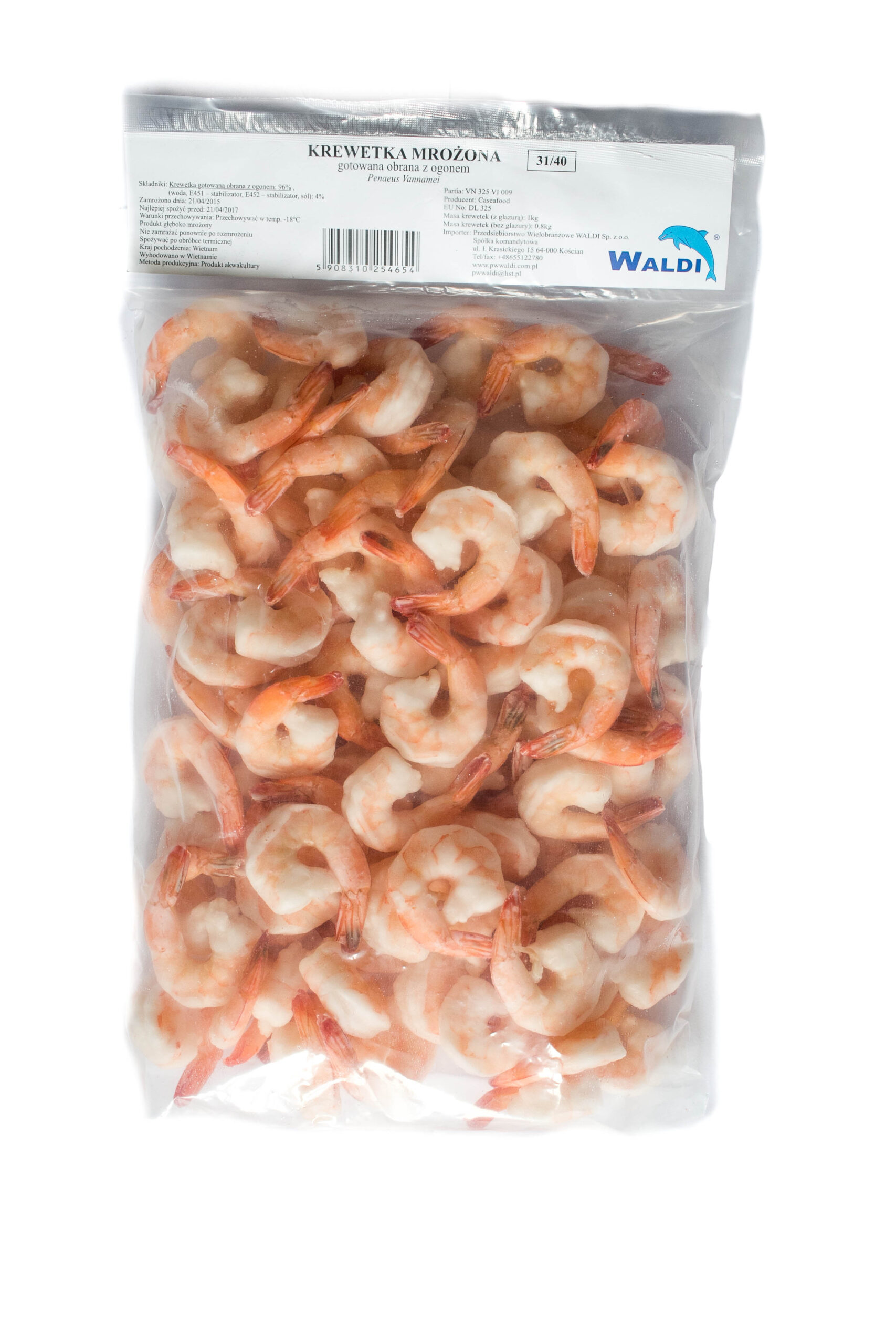 White shrimp (Litopenaeus vannamei) boiled peeled tail on IQF size 31-40 25% glaze 1kg (10x1kg) Vannamei Vietnam